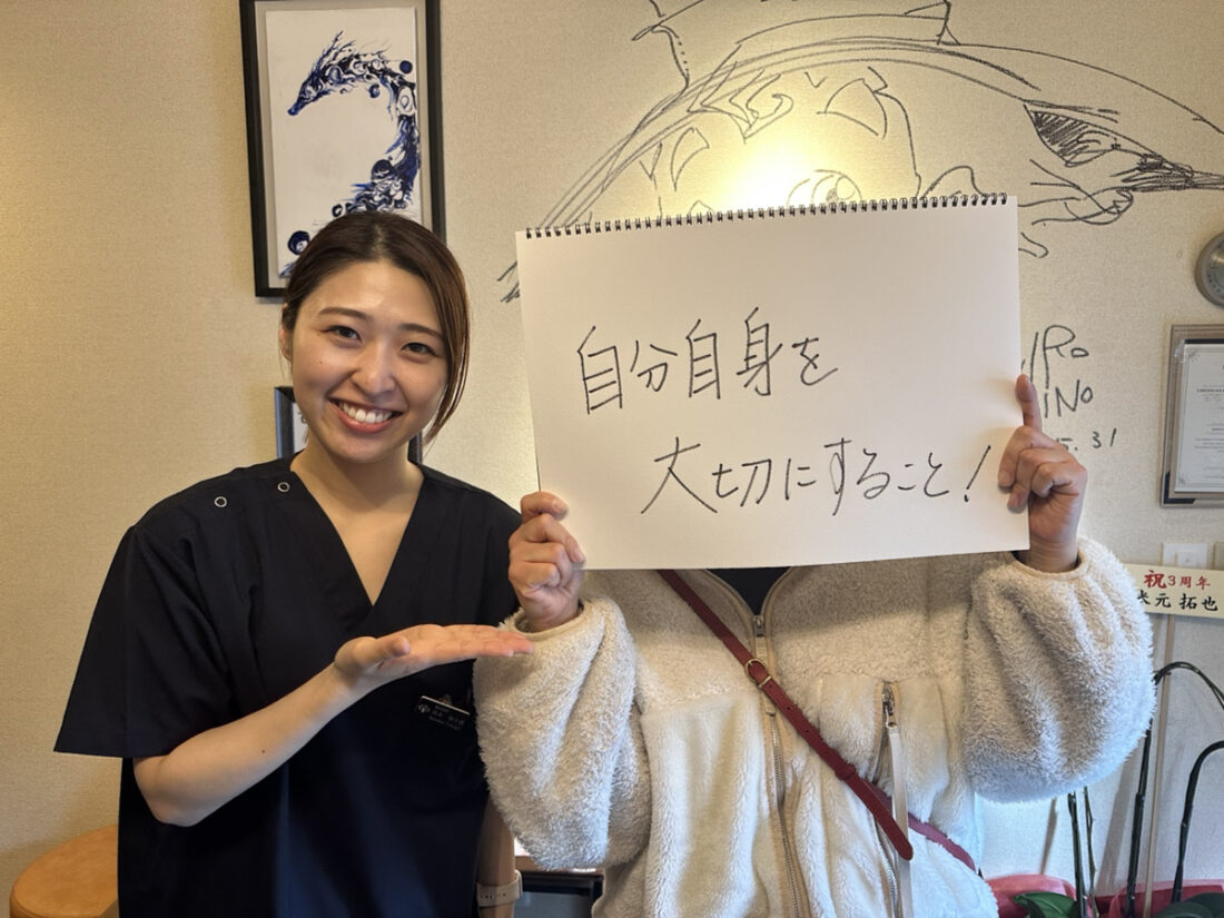 何より先生の温かい雰囲気とリラックスした空間で自分を大切にする(自分の身体と向き合う)ようになりました。